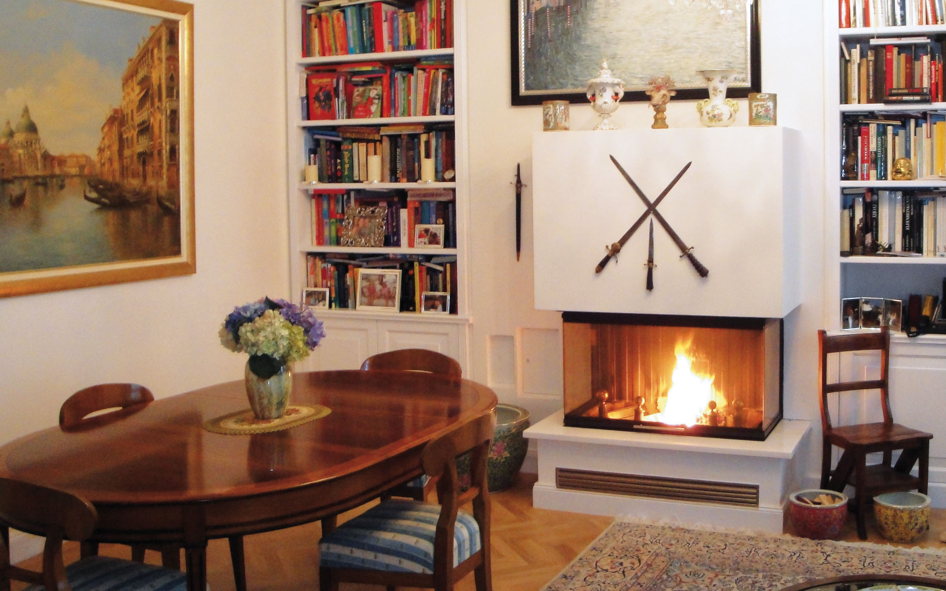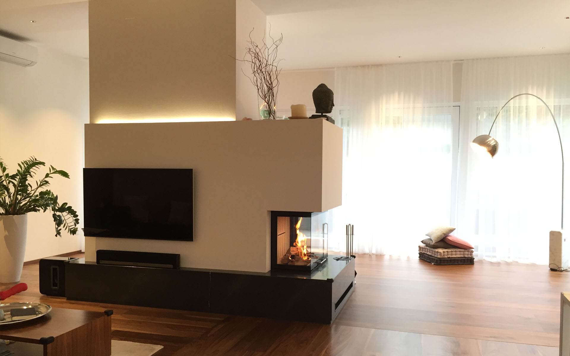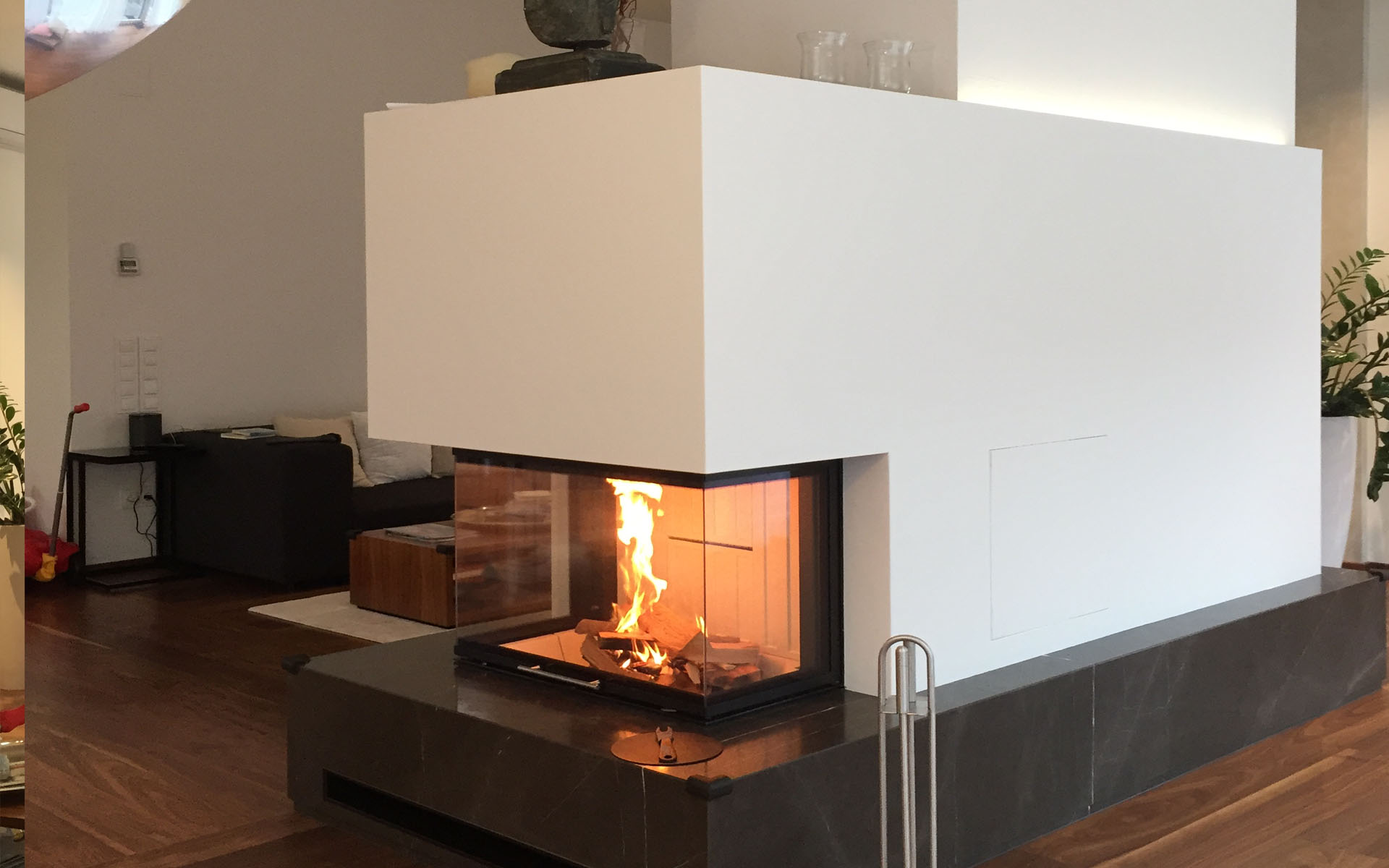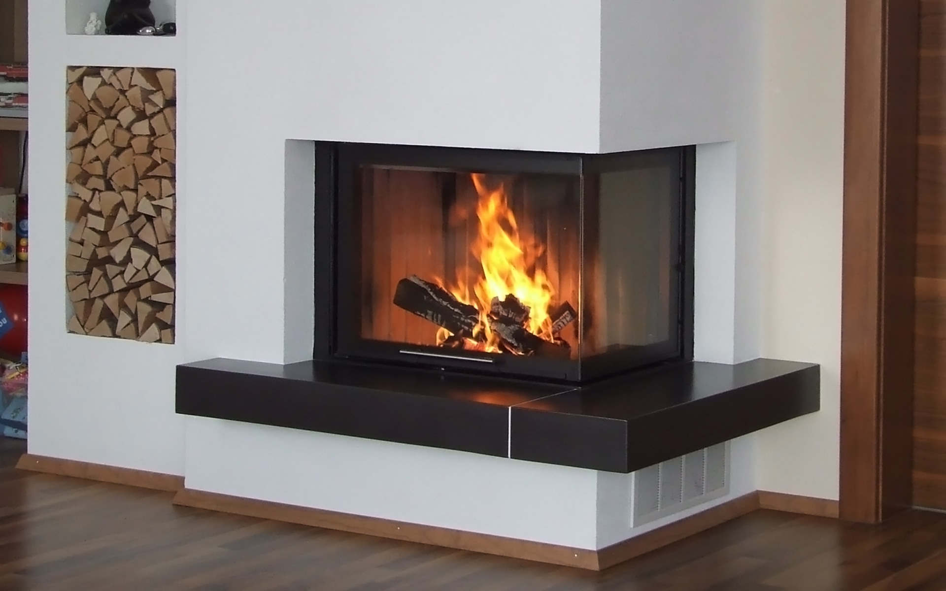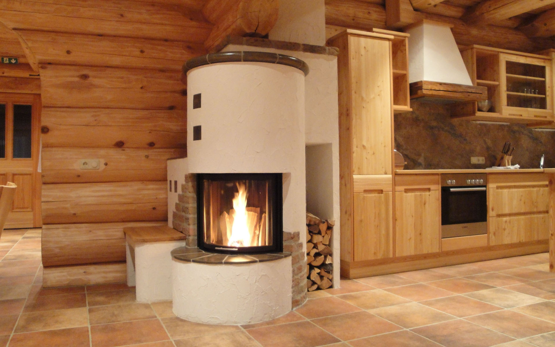 Mit der Vollkachel-Ummantelung des Kamins wird die Wärme nicht nur in Form von Warmluft abgegeben, sondern in den Kacheln gespeichert und gleichmäßig in Form von Strahlungswärme in den Wohnraum abgegeben.